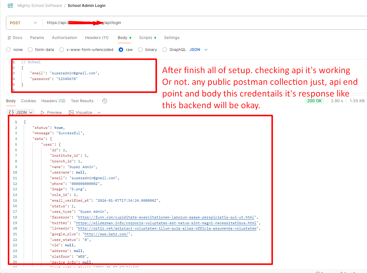 The Base URL must be your API server domain, not your website or admin panel domain.